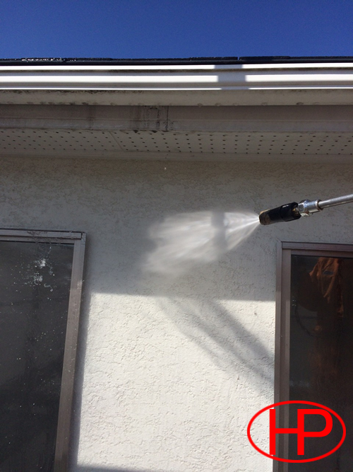 高圧洗浄作業【高水圧で外壁のコケやカビや不要な塗膜などを洗浄します。】