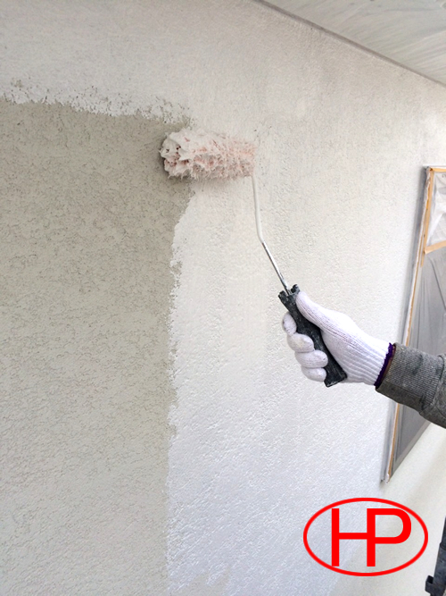 下塗りは下地処理作業をした外壁に最初に塗装する作業で、上塗り材との密着性を高める役割を担います。下塗り材は主にシーラー弾性フィラー等を使用します。シーラは外壁素材に浸透し固める役割と上塗り材との密着性を高める役割で、外壁塗装には下地処理が少なくてすむ劣化の少ない場合に使用されます。弾性フィラーは、浸透はしませんが凹凸を滑らかにする役割と上塗り剤との密着性を高める役割で、クラック処理された下地など凹凸がある場合などに使用されます。